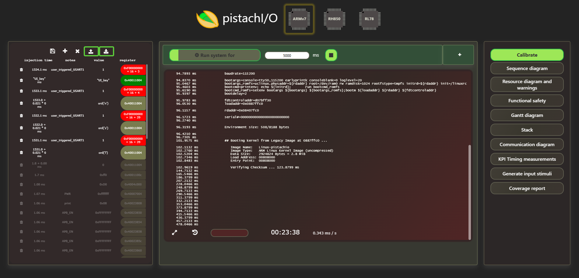 - Run your embedded software binary through pistachI/O without the need of HW